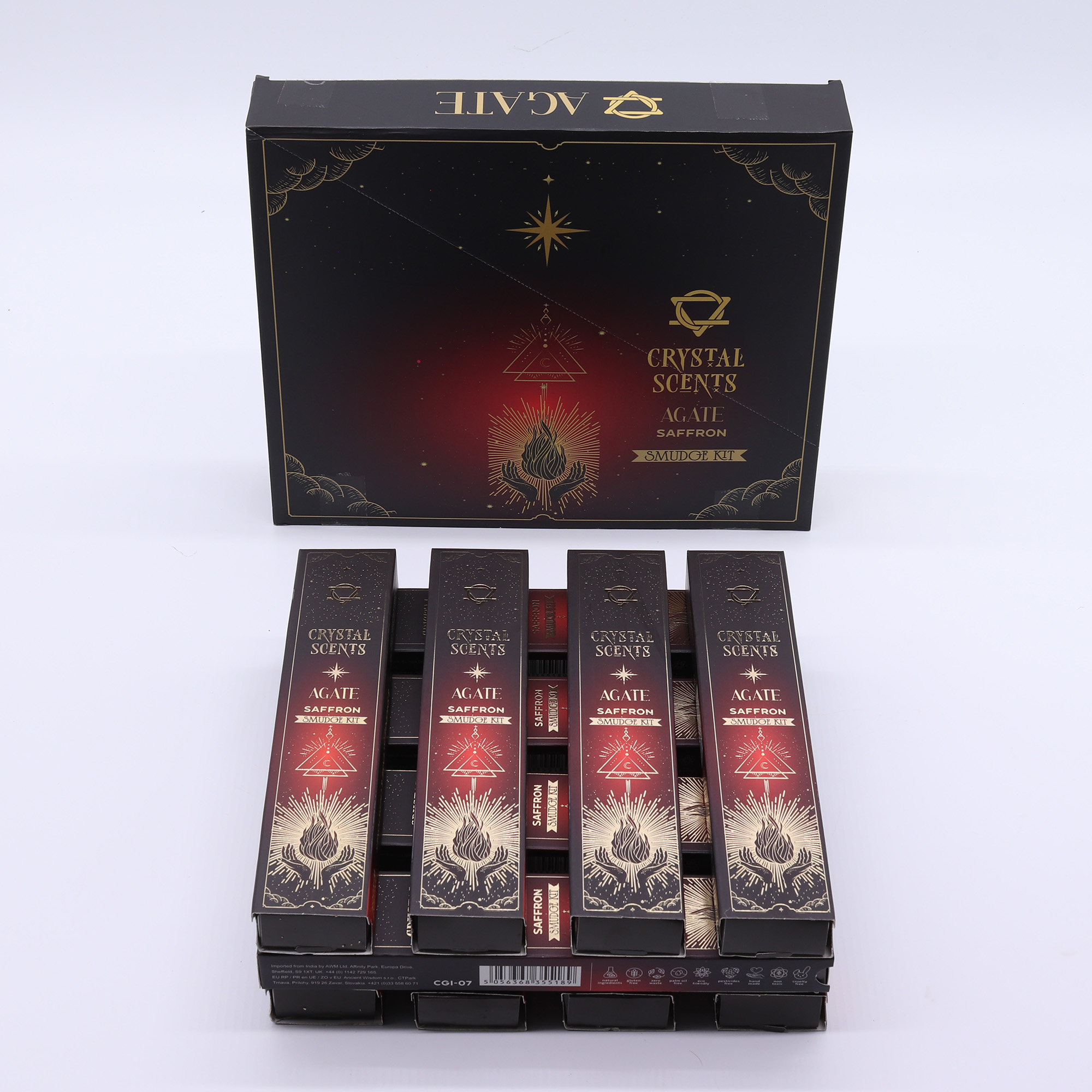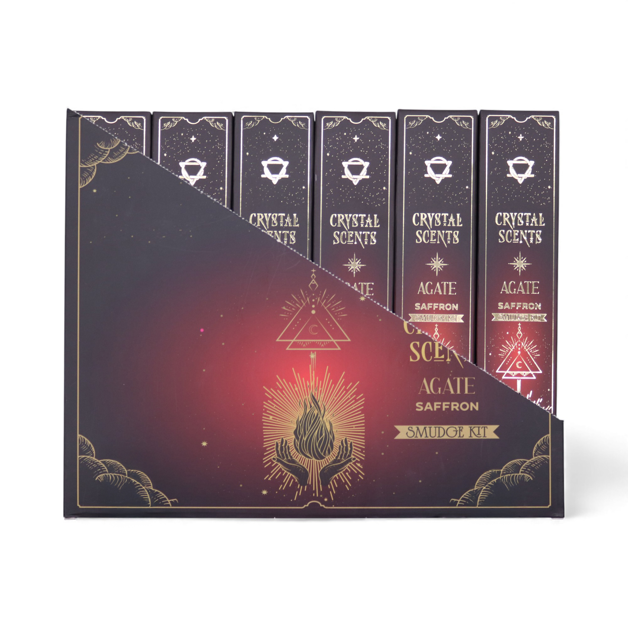 Varje förpackning innehåller tio handgjorda smudge-pinnar med en äkta Röd Agatkristall, vilket ger den stark presentpotential och brett butikstilltal. Dess varma, fylliga doft gör den lämplig för både dagliga centreringsritualer och säsongsutställningar.