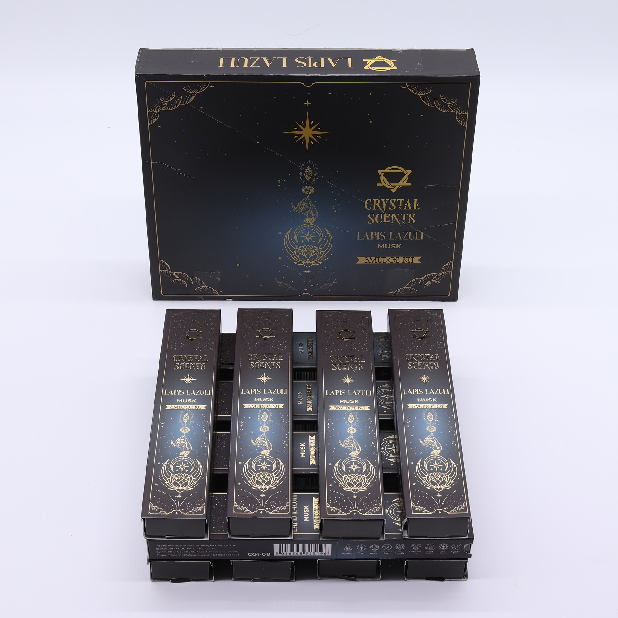 Varje förpackning innehåller tio handgjorda smudge-pinnar och en äkta Lapis Lazuli kristall, vilket gör den idealisk för återförsäljare som fokuserar på medvetna praktiker, studiehjälpmedel eller kreativ inspiration. Sammansättningen känns sofistikerad och fungerar väl för kunder som söker en omtänksam, introspektiv ritual.