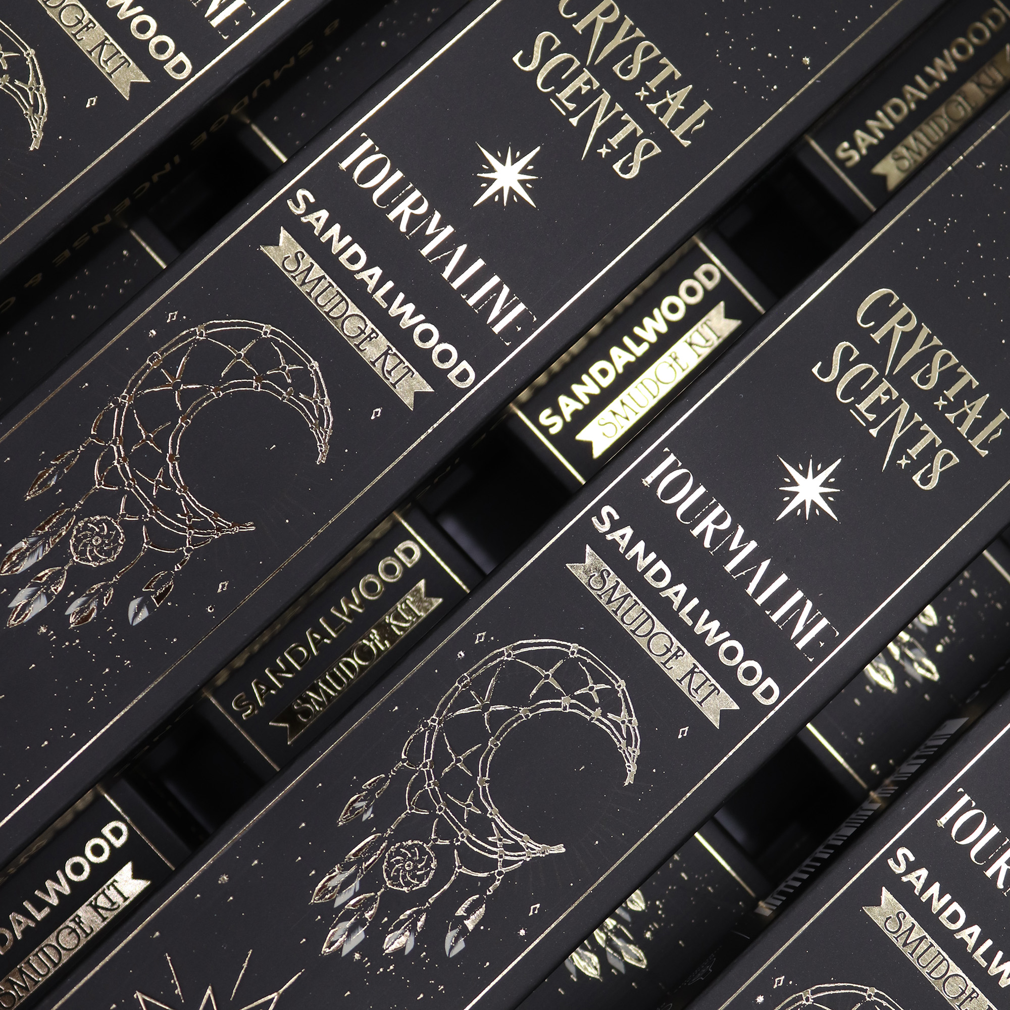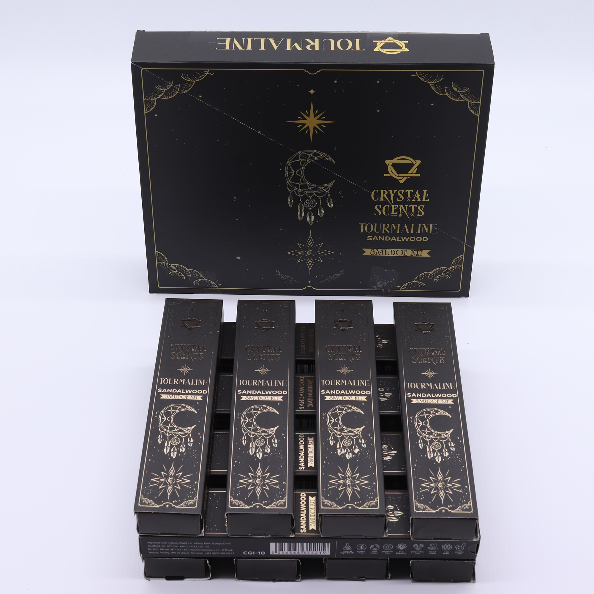 Varje förpackning inkluderar tio handgjorda smudge-pinnar och en äkta Turmalinkristall, vilket gör den till ett starkt val för spirituella butiker, wellness-återförsäljare och butiker som erbjuder verktyg för jordande eller renande ritualer. Dess djupa, tröstande doft är efterfrågad året runt.