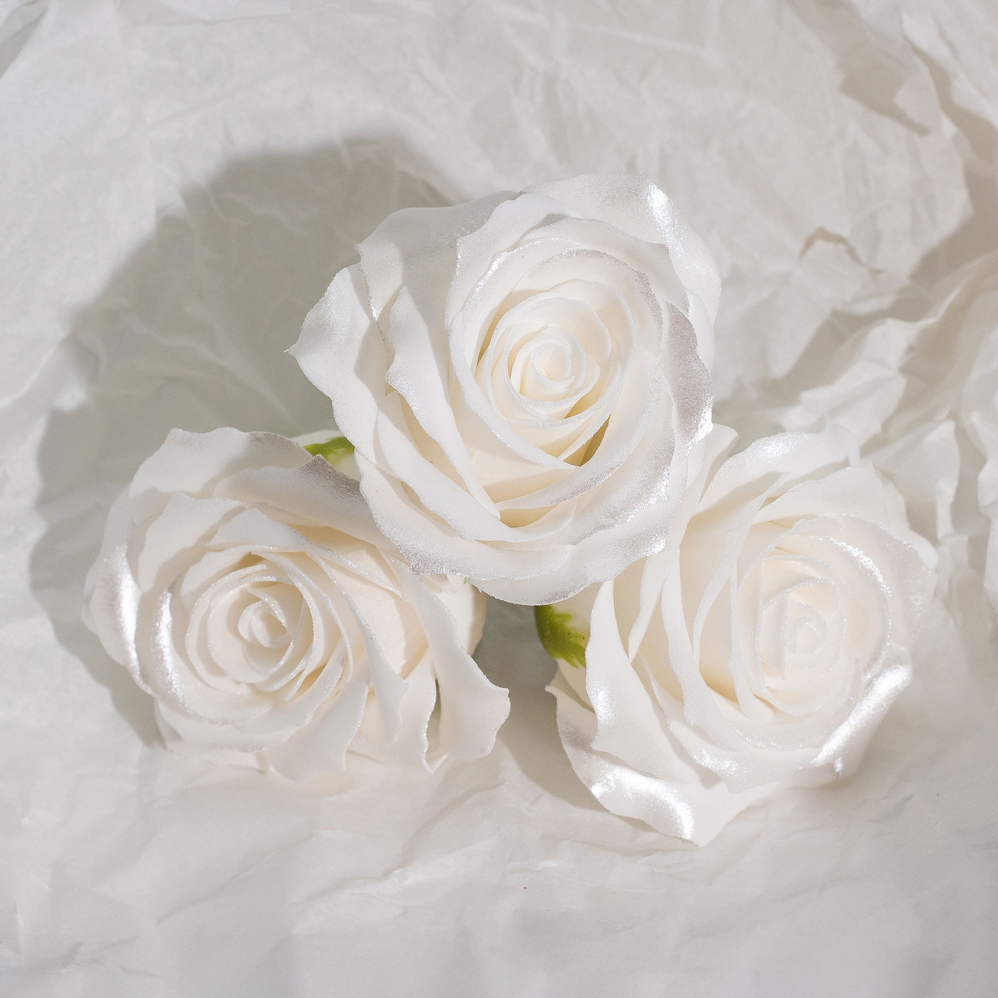 Idealiska för spakorgar, lugn badrumsinredning och bröllopspresenter. Dessa mångsidiga blommor kan arrangeras i buketter, läggas i korgar eller visas upp individuellt. Deras neutrala färg gör dem lätta att kombinera med andra tvålblommor, vilket erbjuder oändliga kreativa möjligheter för återförsäljare.
