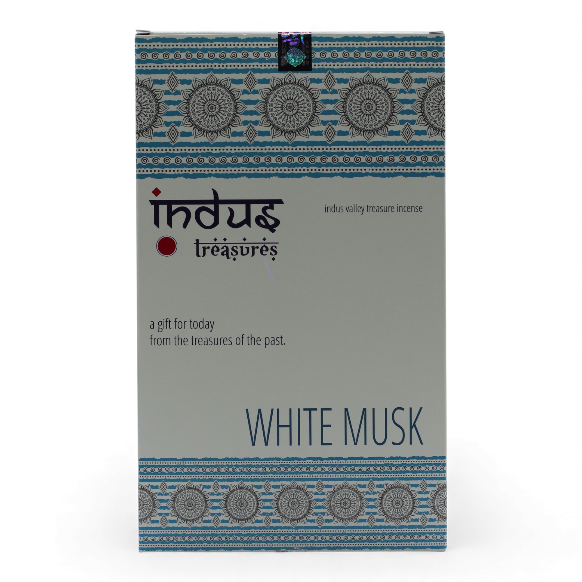 Indus Treasures Rökelsepinnar - Vit Mysk erbjuder en mjuk, len arom med lätta blommiga noter och en mild, pudrig finish. Ett lugnande val för kunder som föredrar subtila, rena dofter framför något tungt eller kryddigt. Dessa indisktillverkade rökelsepinnar brinner jämnt och skapar en fridfull, behaglig atmosfär som är idealisk för sovrum, meditationsutrymmen eller vardaglig hemdoft.