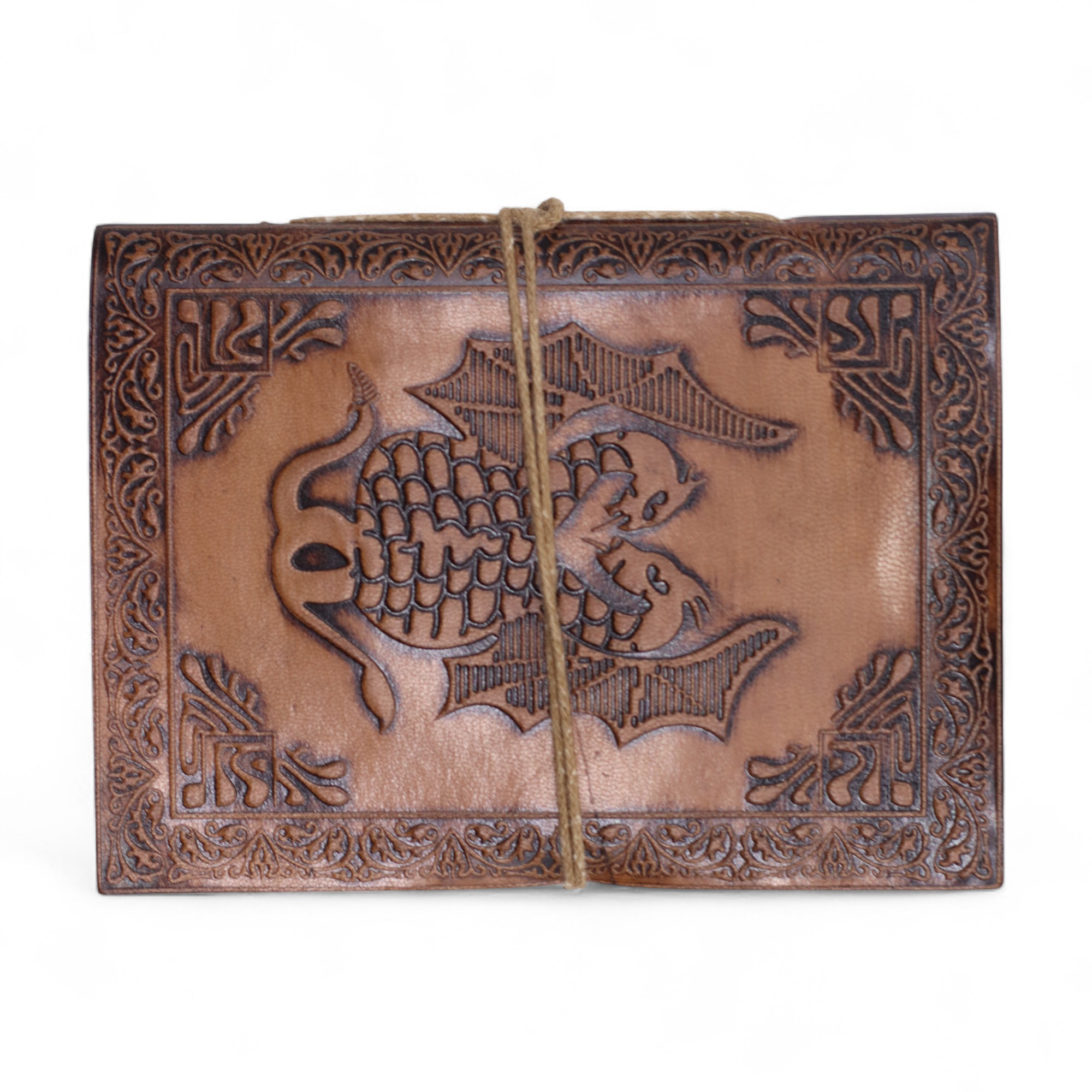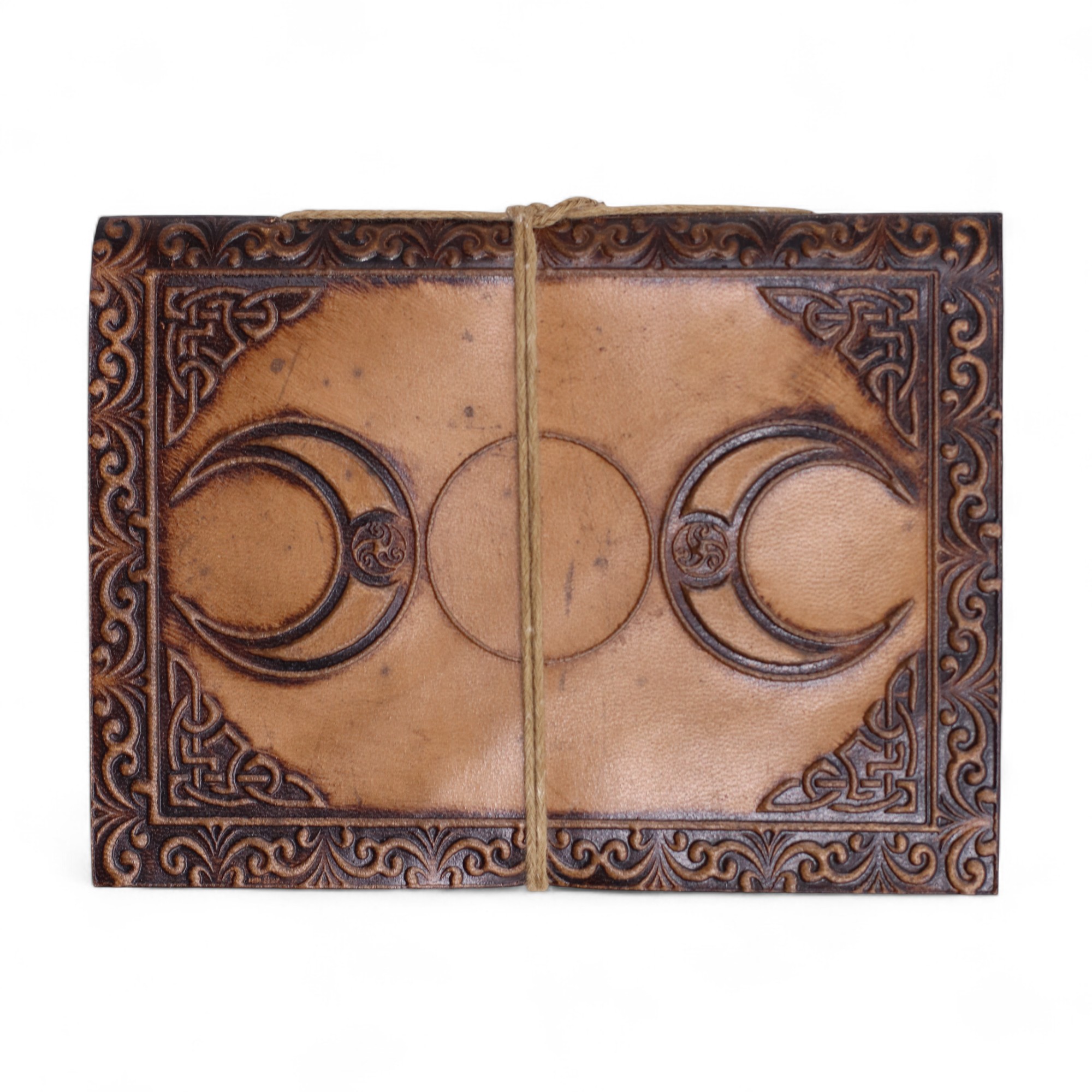 Varje anteckningsbok är handgjord av läder och präglad med mystiska och esoteriska symboler – från himmelska motiv till alkemiska tecken som representerar transformation och andlig tillväxt. Resultatet är en utställning som fängslar och inspirerar.