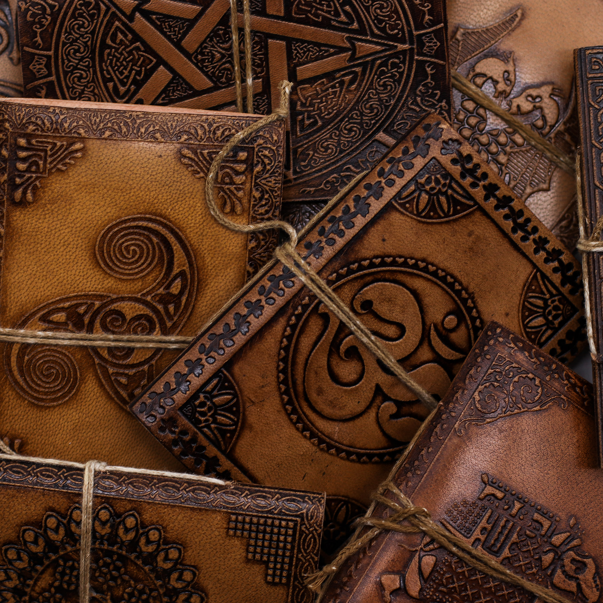 Varje bok är präglad med andliga och mystiska motiv – såsom månar, drakar och heliga symboler – som representerar vägledning, intuition och balans. Sortimentet erbjuder visuell mångfald samtidigt som det bibehåller en sammanhållen, handgjord look.