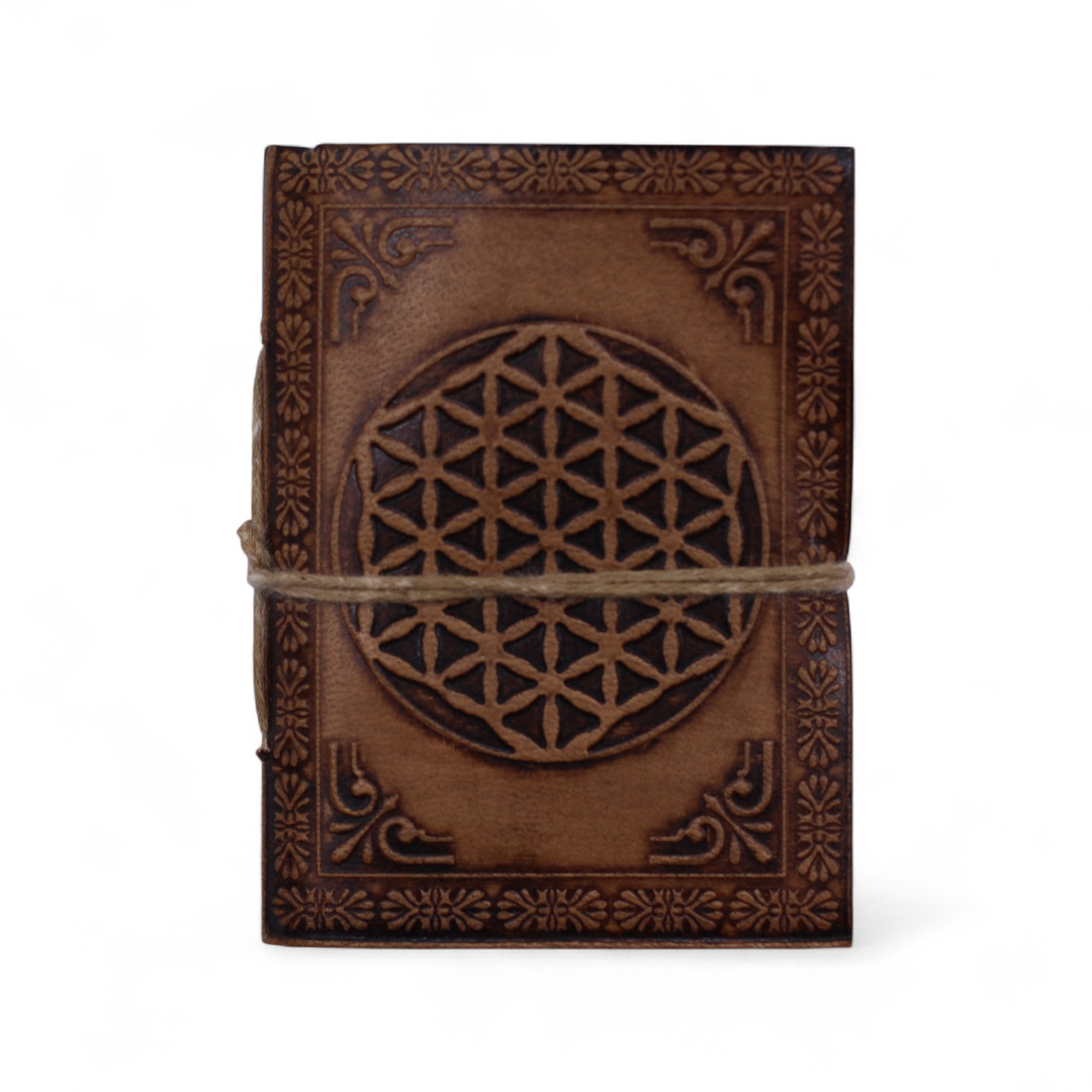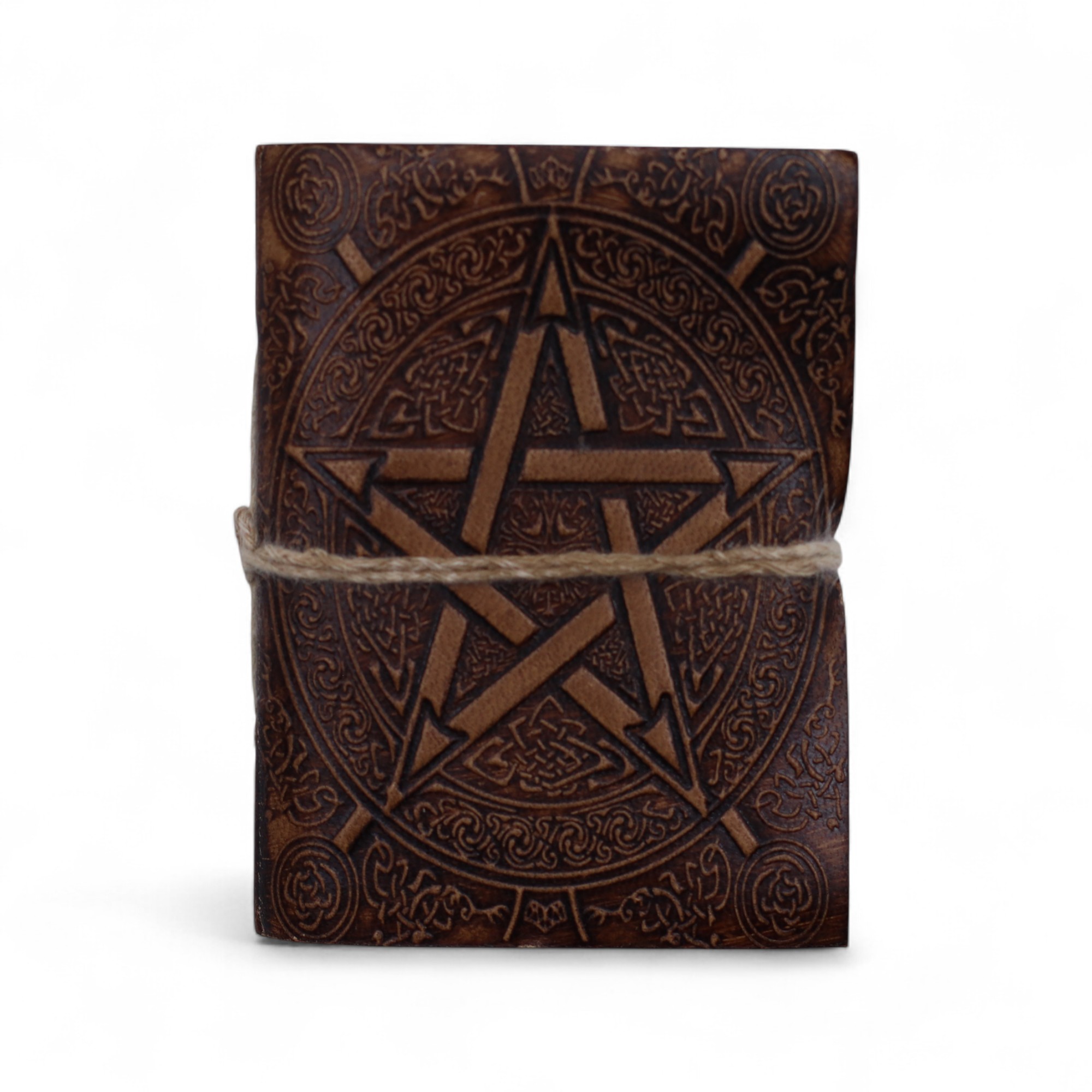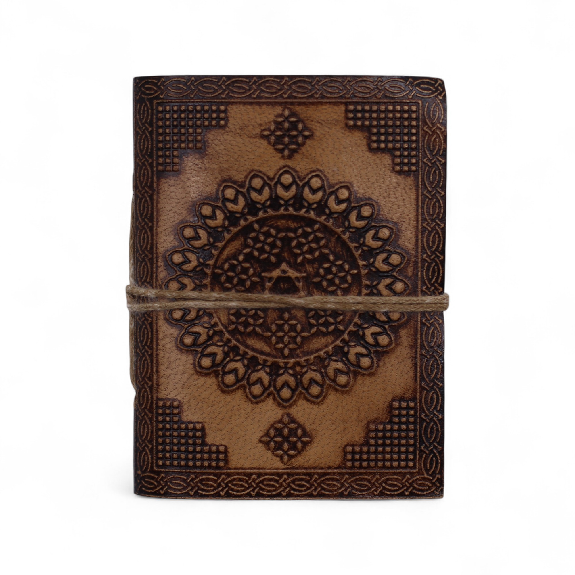 Varje bok har ett mjukt läderomslag präglat med intrikata esoteriska mönster inspirerade av astrologi, helig geometri och andlig symbolism. Deras kompakta storlek, 4x3” (ca 10.2 x 7.6 cm), gör dem perfekta som fickjournaler, resedagböcker eller tacksamhetsanteckningsböcker – lätta att visa upp och idealiska för impulsköp nära kassan.