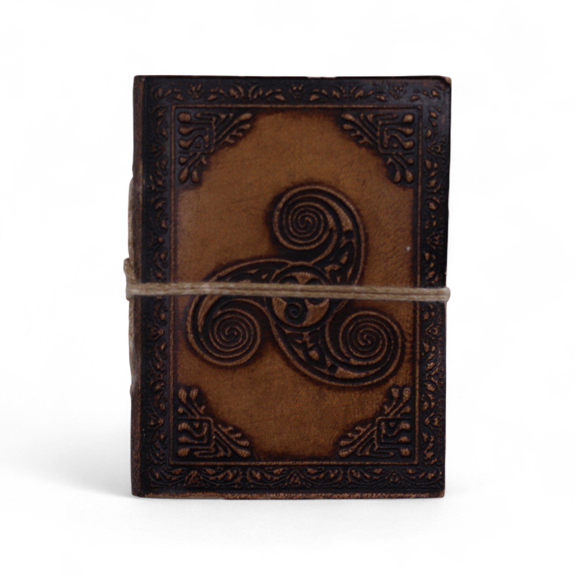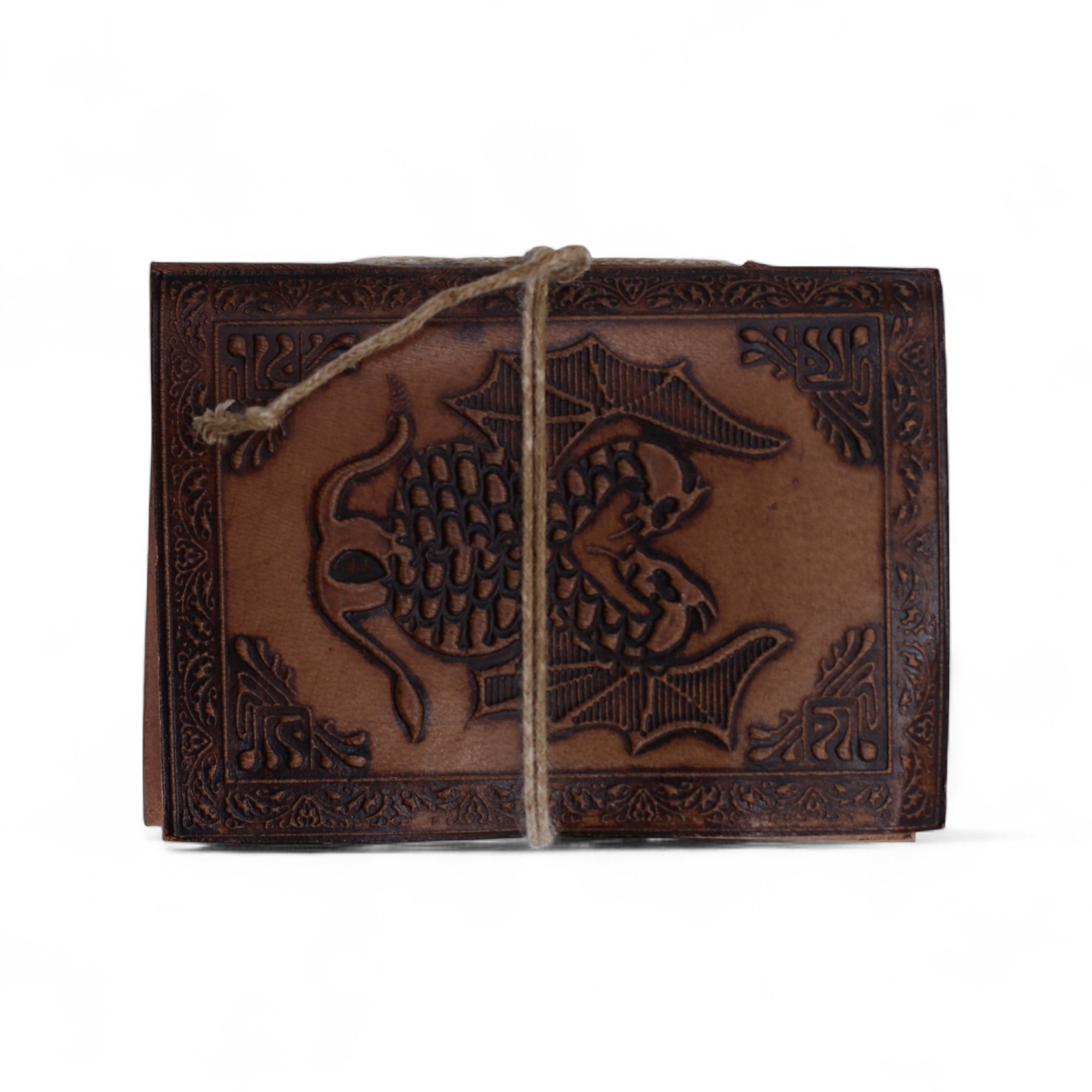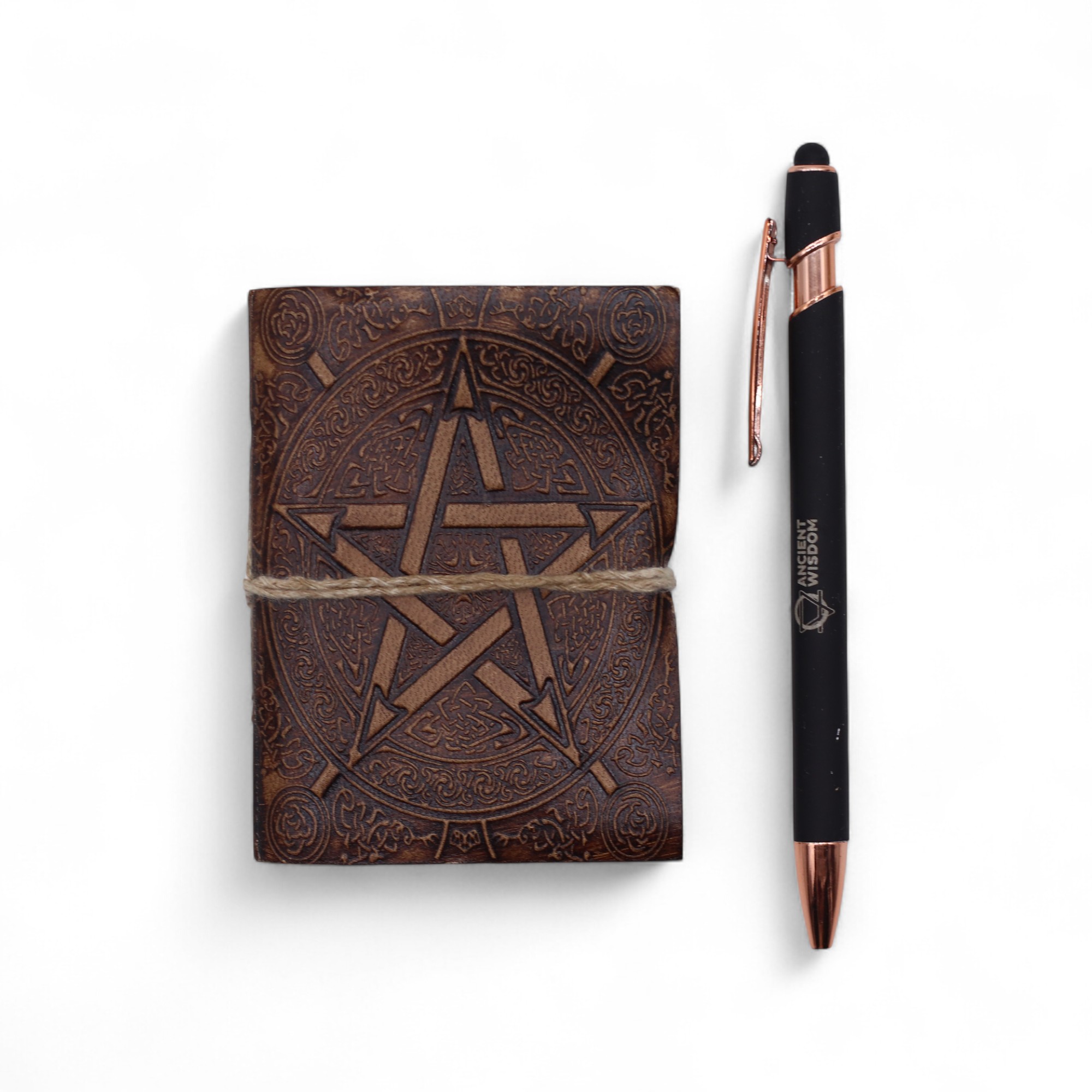 Varje bok har ett mjukt läderomslag präglat med intrikata esoteriska mönster inspirerade av astrologi, helig geometri och andlig symbolism. Deras kompakta storlek, 4x3” (ca 10.2 x 7.6 cm), gör dem perfekta som fickjournaler, resedagböcker eller tacksamhetsanteckningsböcker – lätta att visa upp och idealiska för impulsköp nära kassan.
