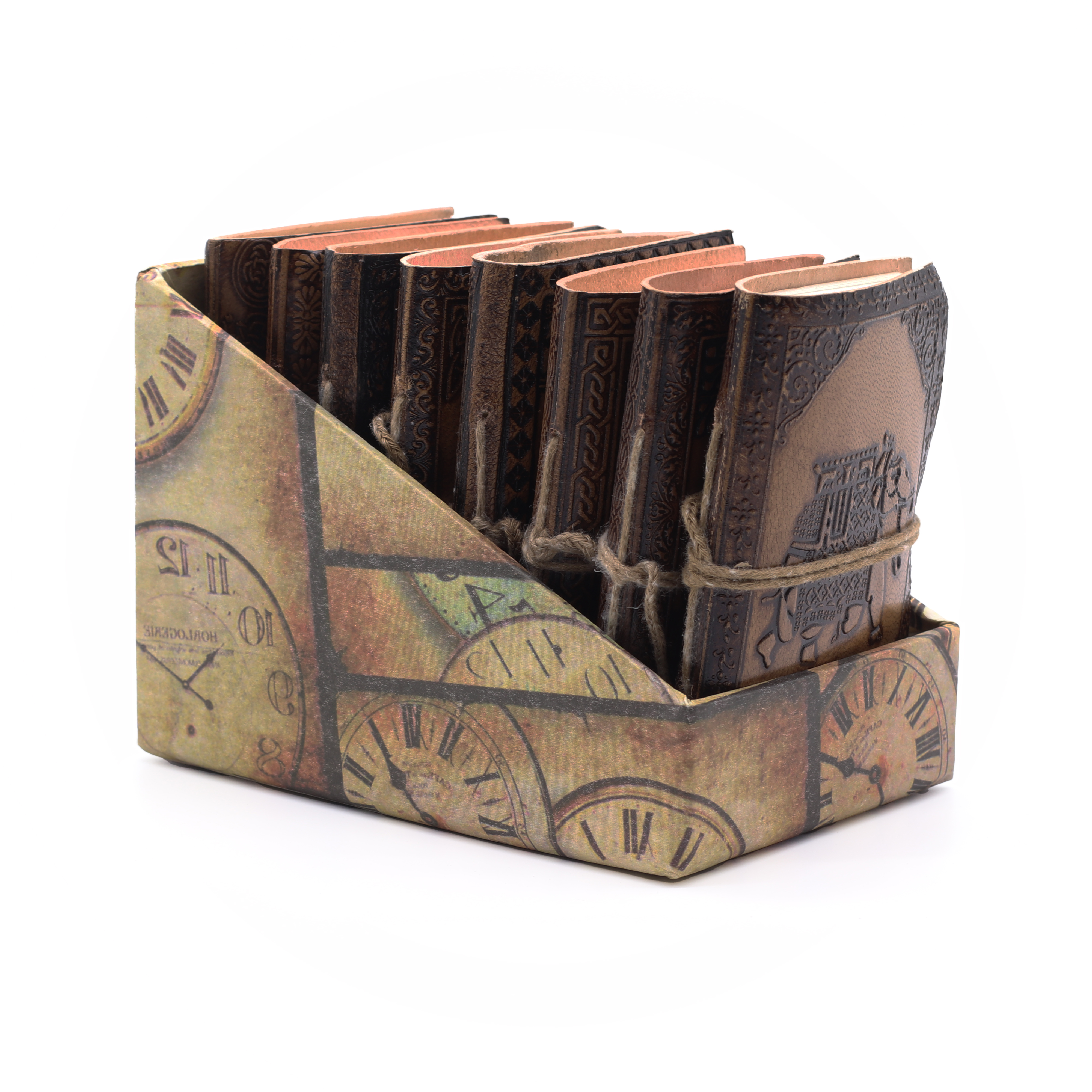 Detta charmiga set med små läderanteckningsböcker tillför en känsla av gammaldags mystik till alla butiksytor.