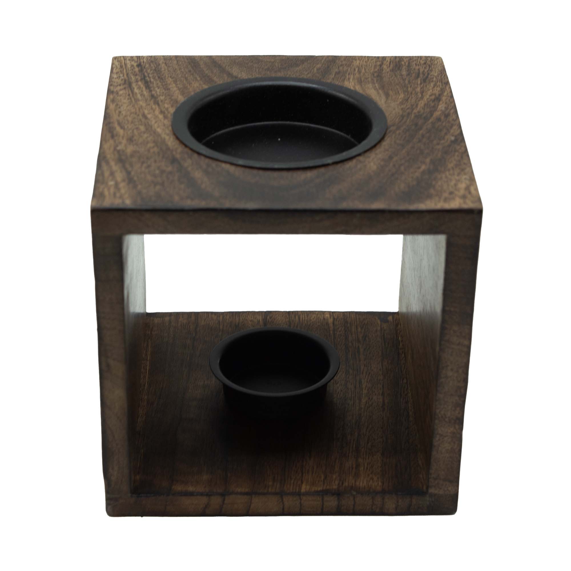 Oljebrännaren är utformad för att användas med doftoljor eller doftgranulat. Den sprider doften varsamt samtidigt som den ger ett varmt sken som framhäver träets naturliga ådring. Tack vare sitt större format har den en starkare visuell närvaro än standardbrännare, vilket tilltalar kunder som söker både tydlig symbolik och praktisk användning.