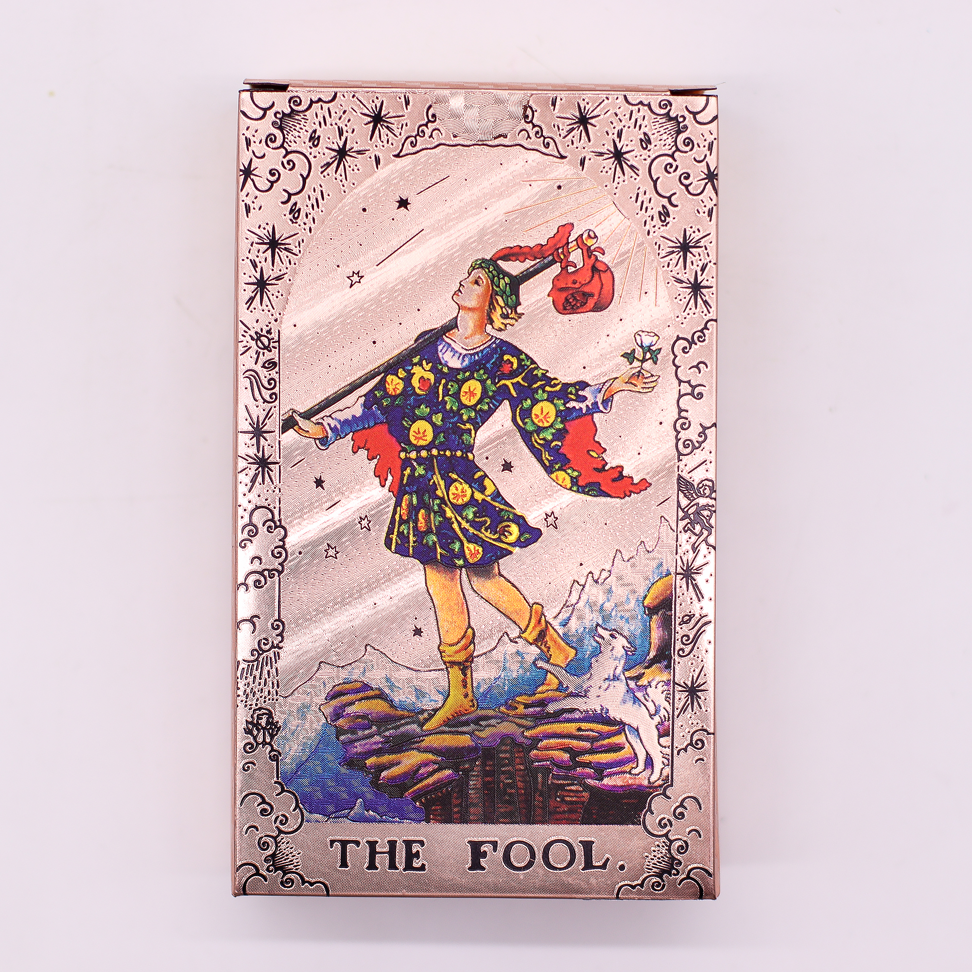 Denna lysande kortlek erbjuder sofistikation och är perfekt för läsningar, meditation eller som ett utmärkande samlarobjekt, vilket gör den till ett iögonfallande tillskott till alla väl utvalda detaljhandelskollektioner.