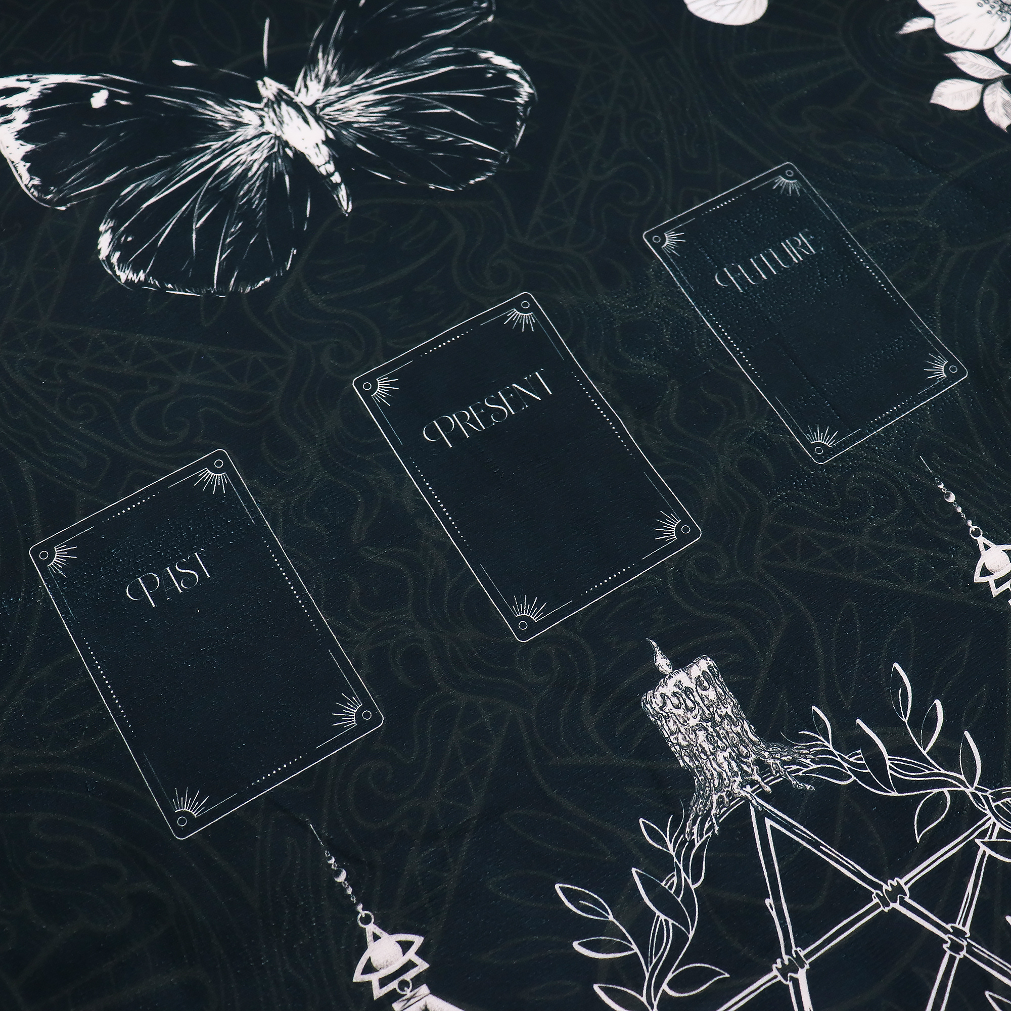 Denna duk förvandlar varje kortläggning till en upplevelse djupt rotad i häxkonstens tradition, perfekt för att tillföra karaktär och djup till ditt metafysiska sortiment.