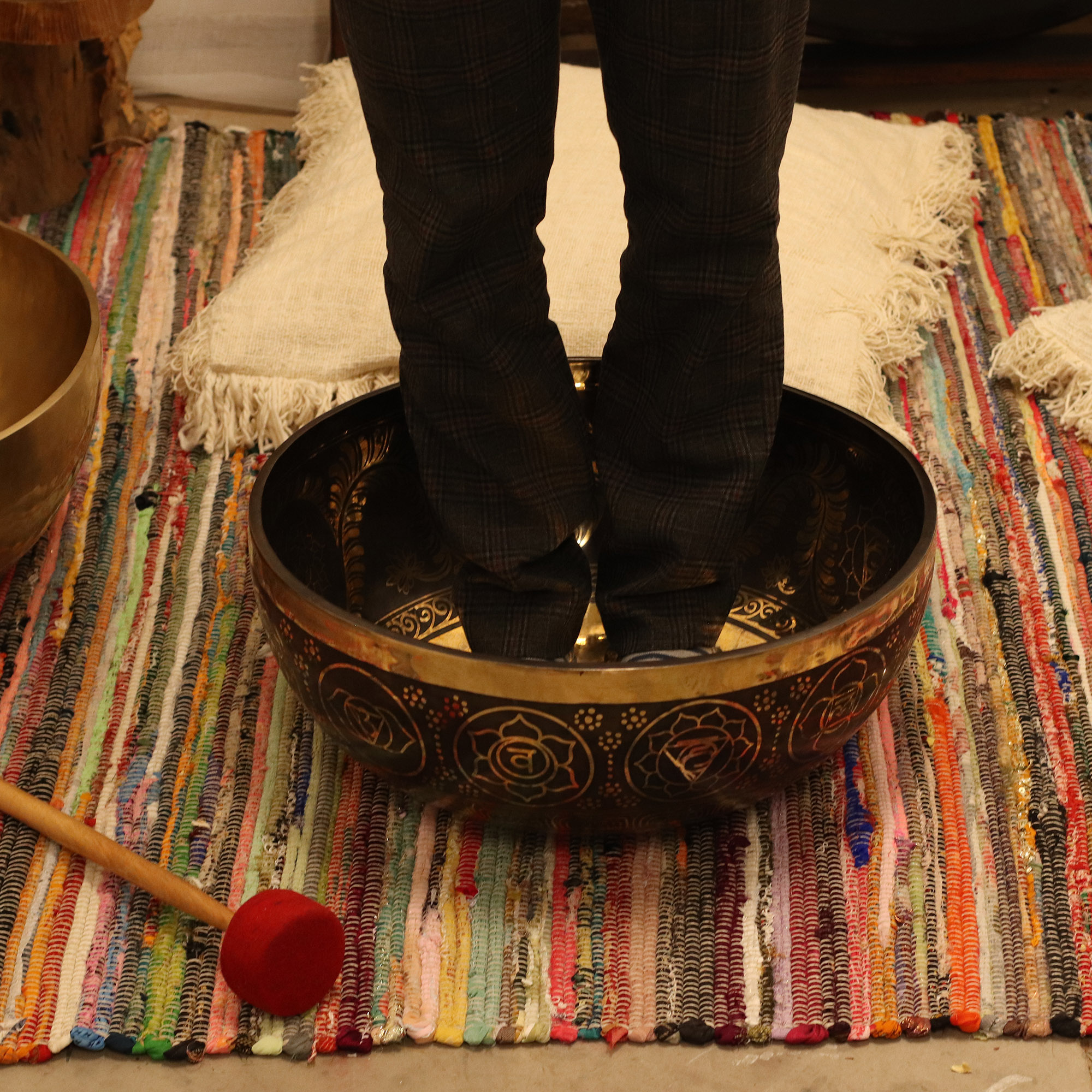 Den Extra Stora Graverade Vibrationsskålen (ca 10.7 kg) är ett slående exempel på traditionellt hantverk och kraftfullt ljudarbete. Den är handgraverad med intrikata detaljer och erbjuder både visuell dragningskraft och djup terapeutisk resonans.
