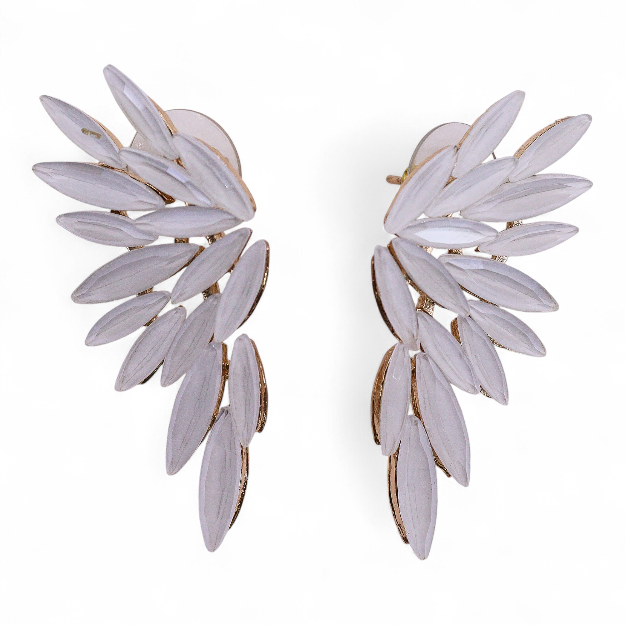 Dessa Änglavingeörhängen ger ditt smyckessortiment tidlös elegans. De har delikata pärlemor-färgade glasaccenter formade till graciösa vingdesigner. De är lätta men ändå slående, och erbjuder en idealisk balans mellan eterisk skönhet och varaktig styrka.