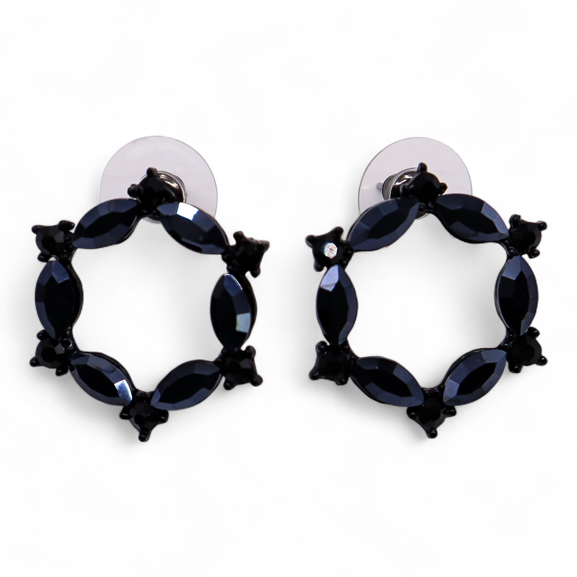Tillför en dramatisk prägel till ditt smyckessortiment med dessa ringformade glasörhängen som har slående kolsvarta glasaccenter infattade i polerat rostfritt stål. Deras rena cirkulära design levererar en djärv minimalism som tilltalar både uttrycksfulla och sofistikerade kunder.