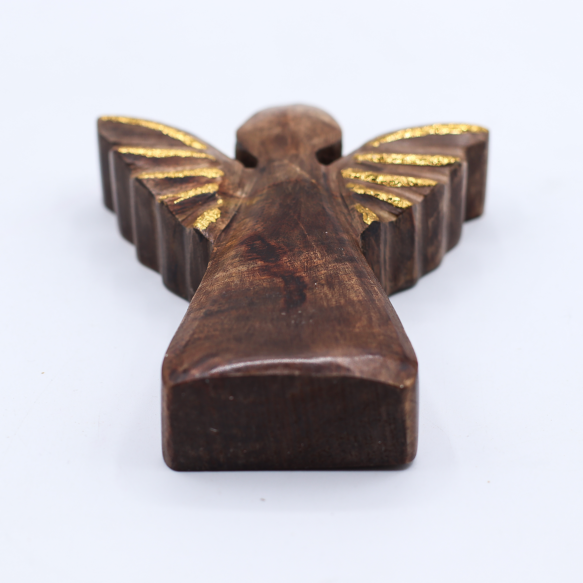 Denna charmiga Lilla Ängel i Mangoträ med Gyllene Dekor tillför värme och lugn till varje miljö. Den är handskuren i Indien av hållbart mangoträ, och har delikata gulddetaljer, vilket ger en känsla av tidlös charm. Varje del är rättvist handlad och tillverkad med omsorg, vilket gör dem perfekta för individuell försäljning i butik. Dessa mindre änglar är särskilt populära som säsongsbetonade presenter, omtänksamma bröllopsgåvor, eller som en del av en fridfull utställning.